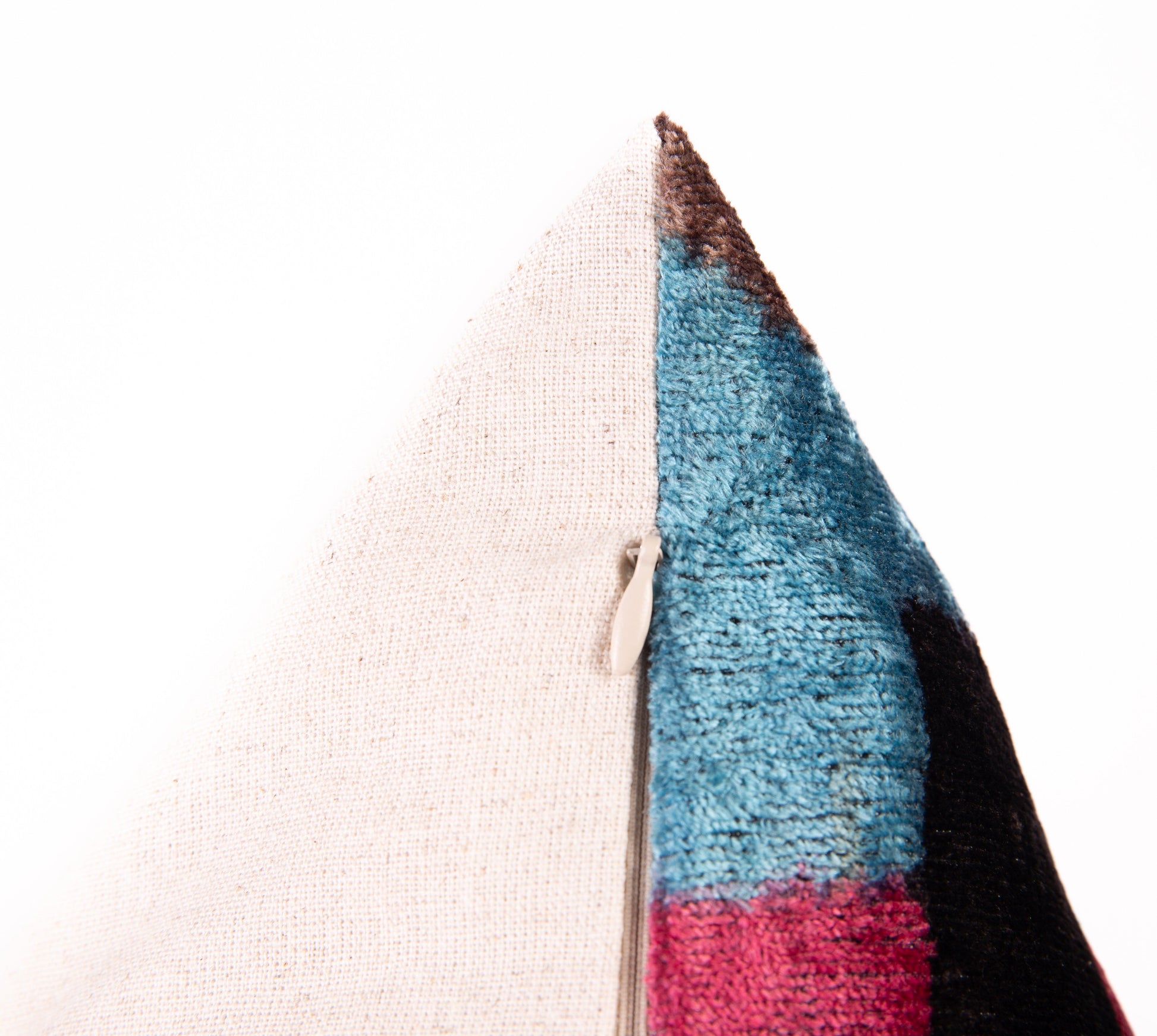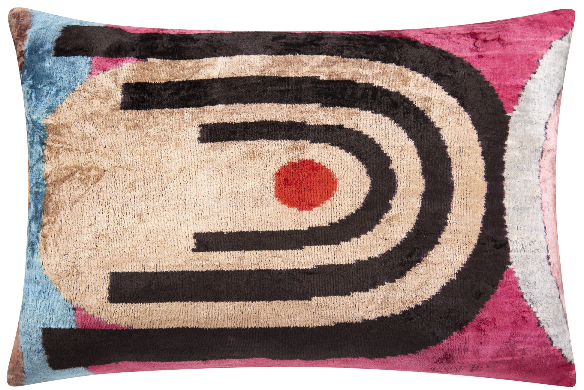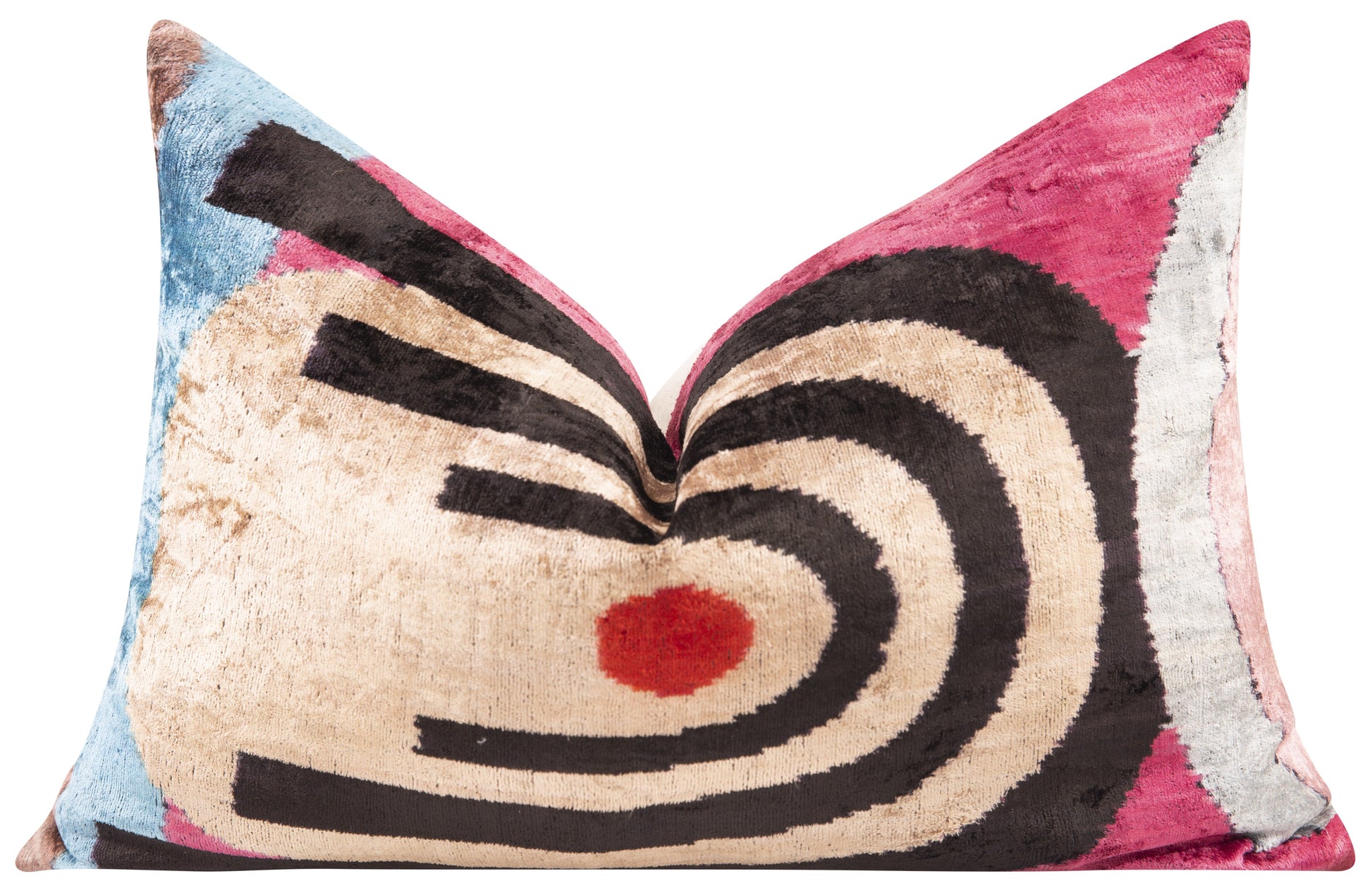 This playful 16x24-inch cushion bursts with vibrant, eye-catching colours that dance across luxurious velvet silk and it's handcrafted to perfection.