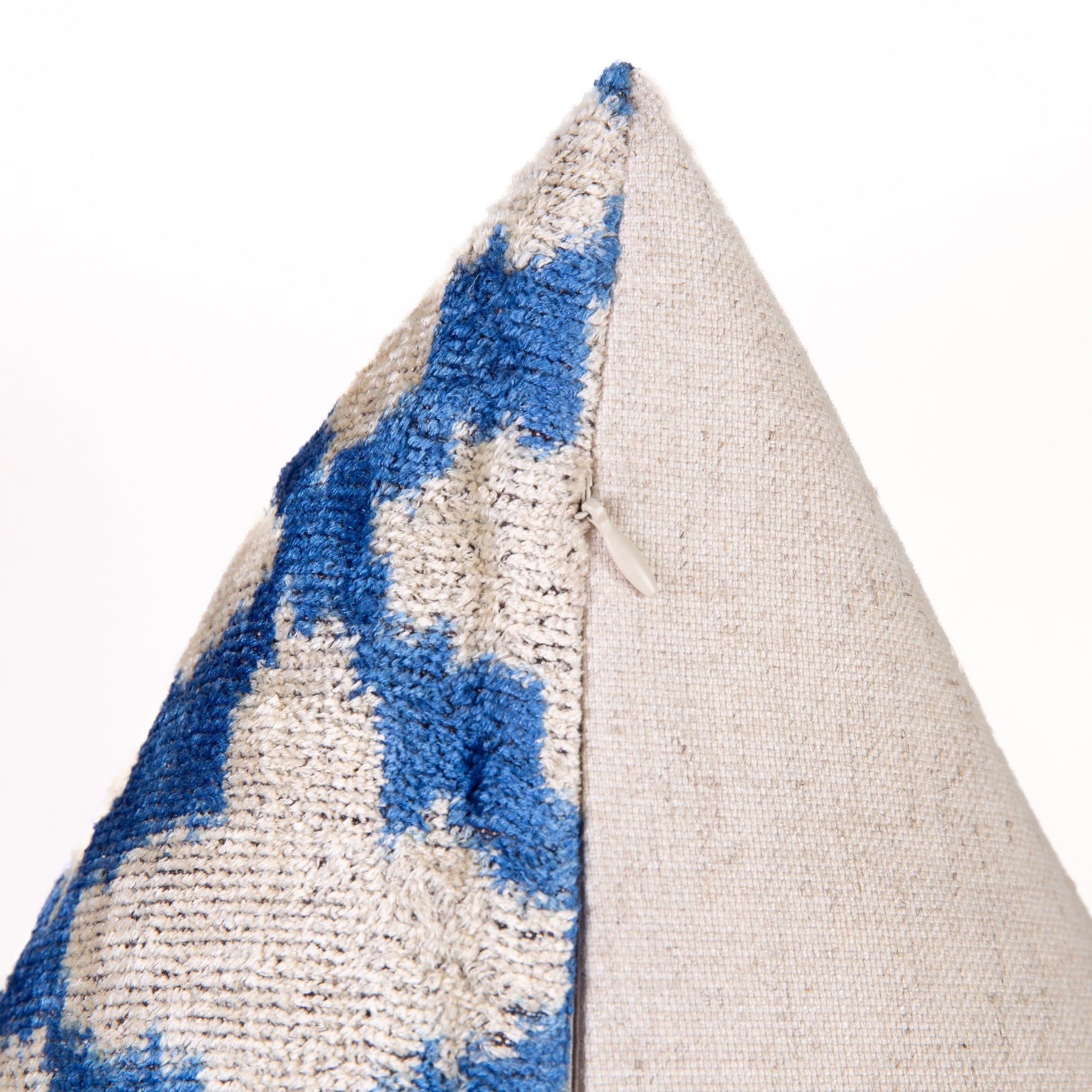 Handmade Velvet Moroccan trellis pattern in blue and beige Cushion